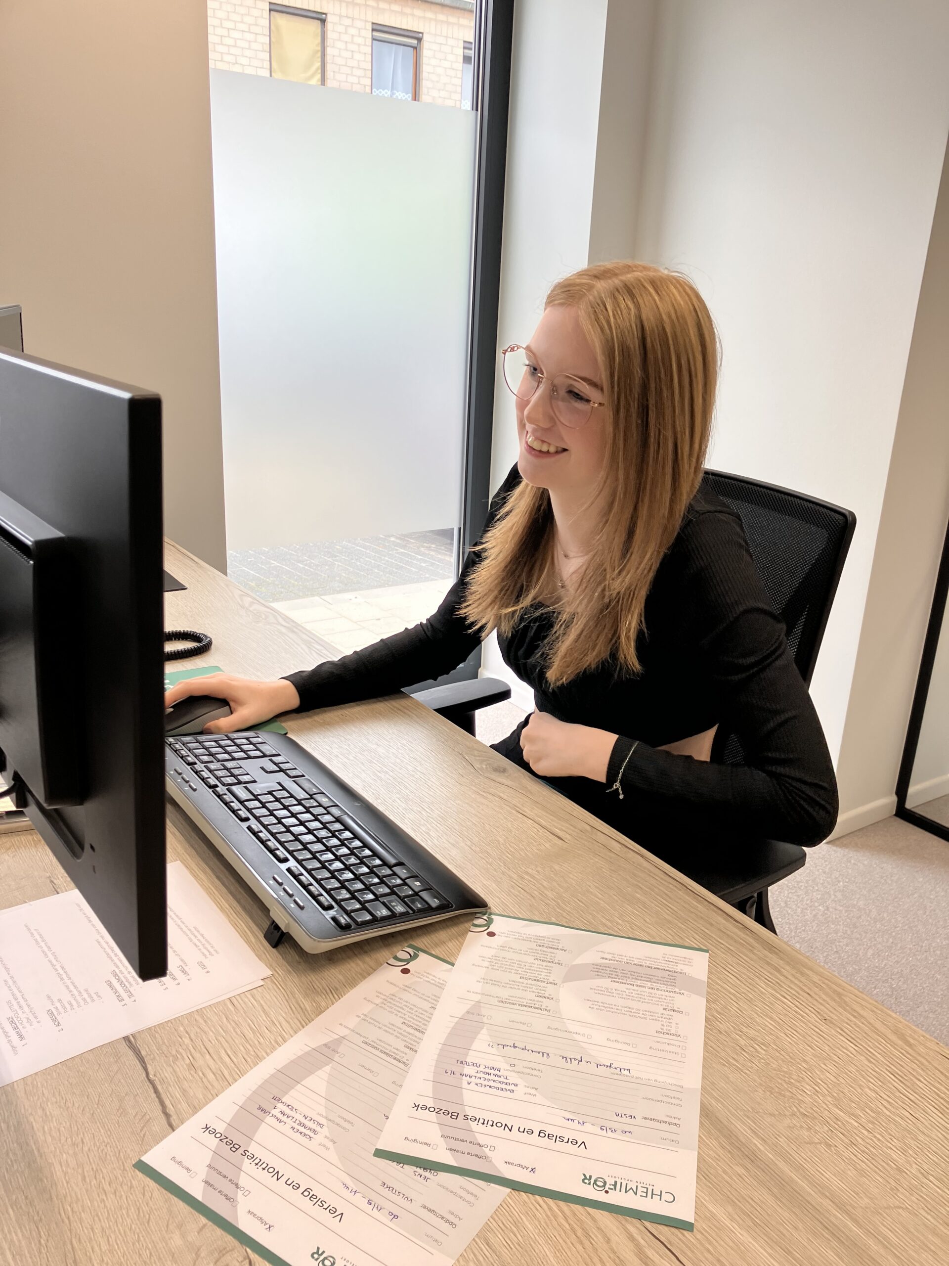 Als u Manon wilt ontmoeten, dan moet u op ons kantoor zijn. Ze ondersteunt de binnendienst: gegevens aanvullen, documenten orderenen en bestellingen klaarzetten, zijn haar dagelijkse taken als jobstudent. Toch is ze niet verlegen om ook mee te helpen in het magazijn.