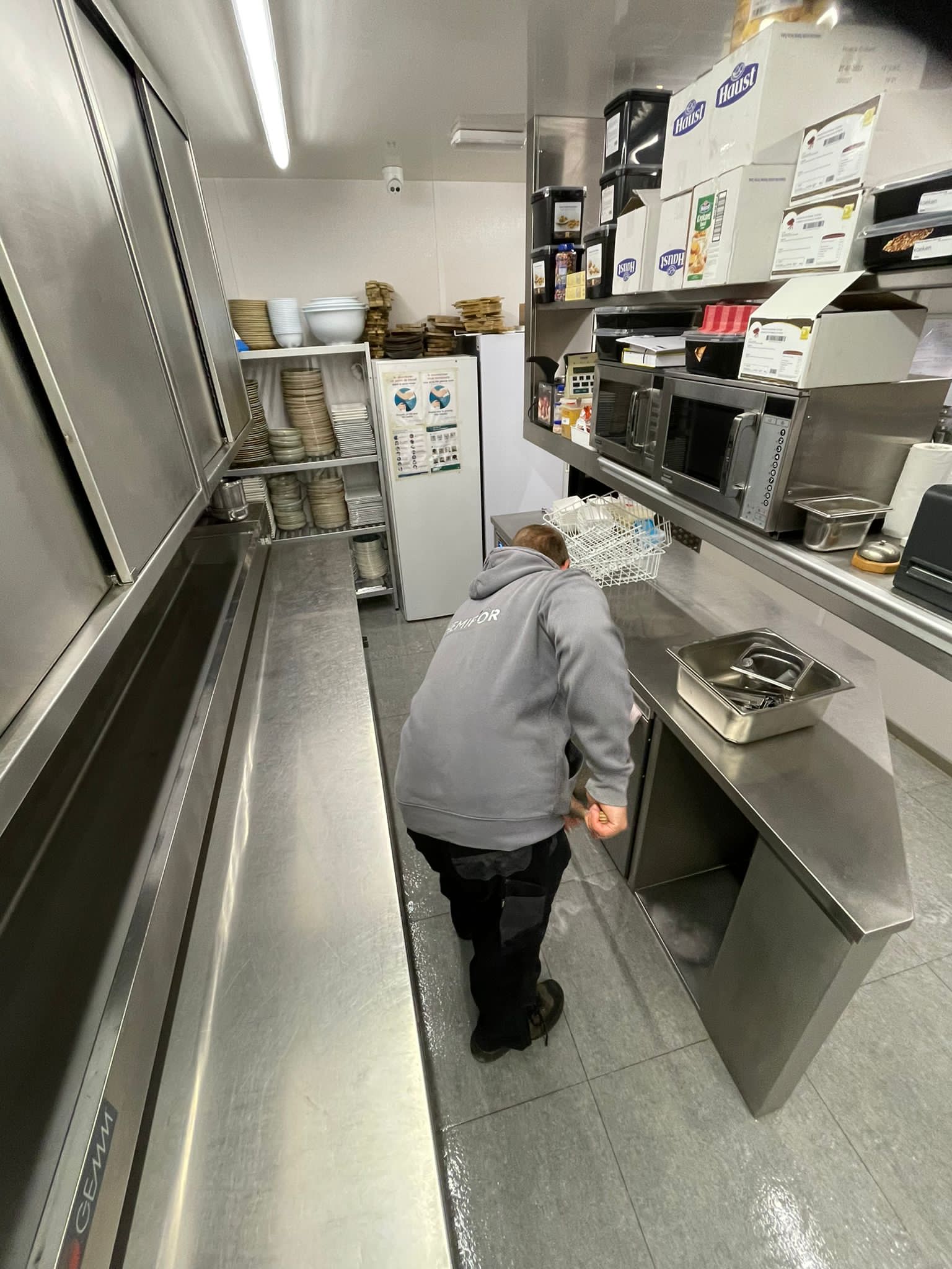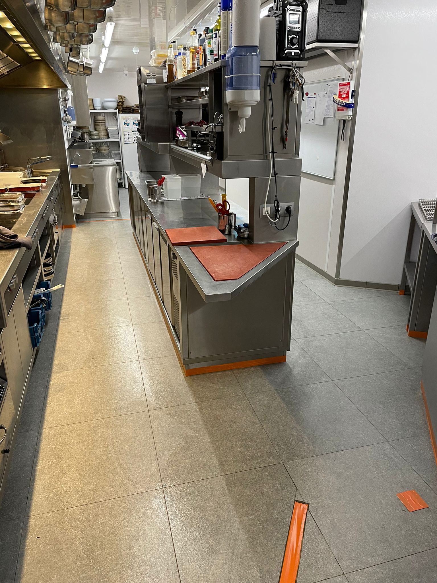 Het zaalpersoneel van deze klant had last van de gladde vloer in de keuken. Het keukenpersoneel heeft antislipschoenen aan maar het zaalpersoneel kwam met hun gewone nette schoenen de keuken binnen waardoor zij problemen hadden met de gladde vloer. Daarom heeft de eigenaar Chemifor ingeschakeld om de vloer van anti slip te voorzien .