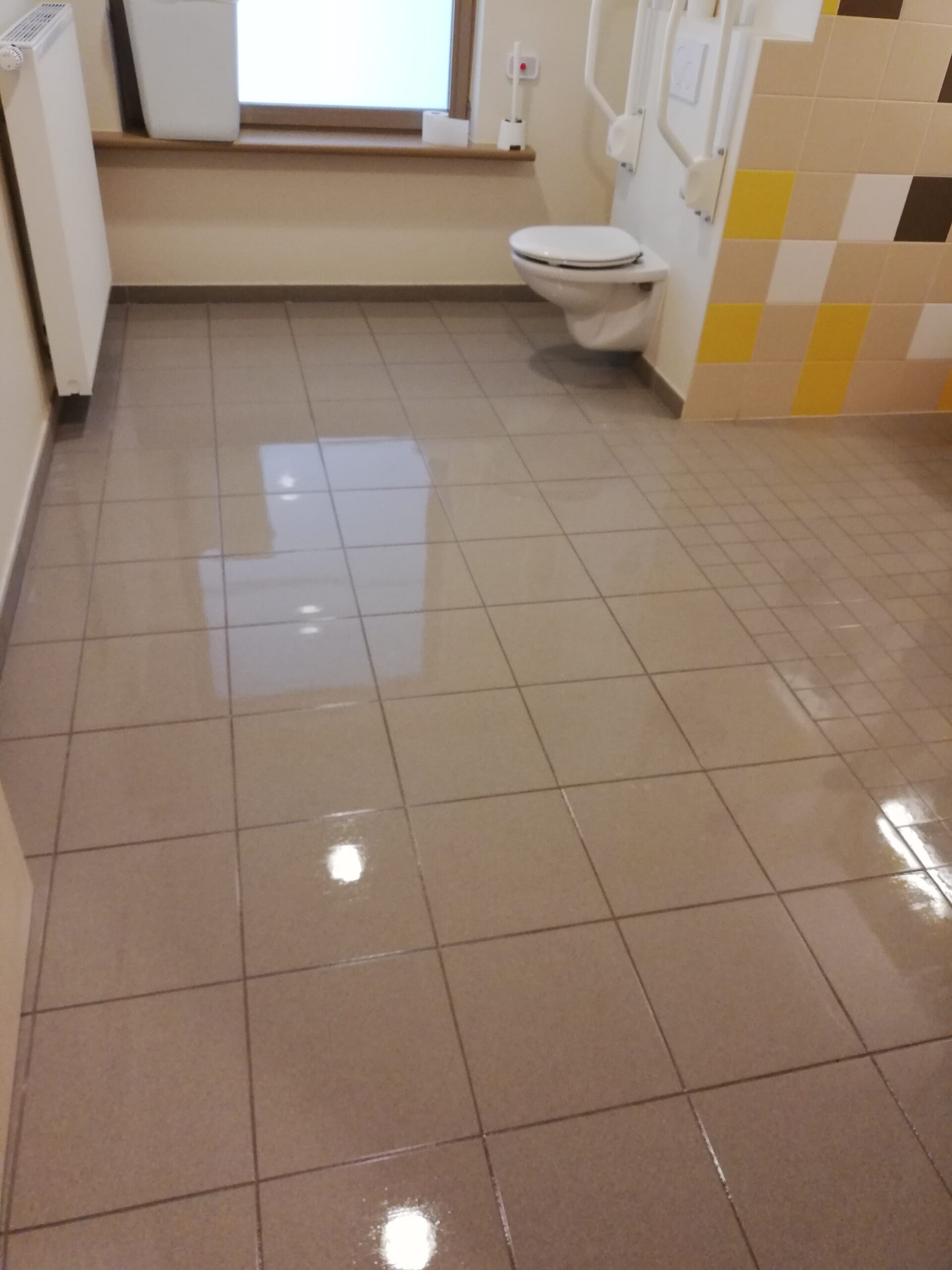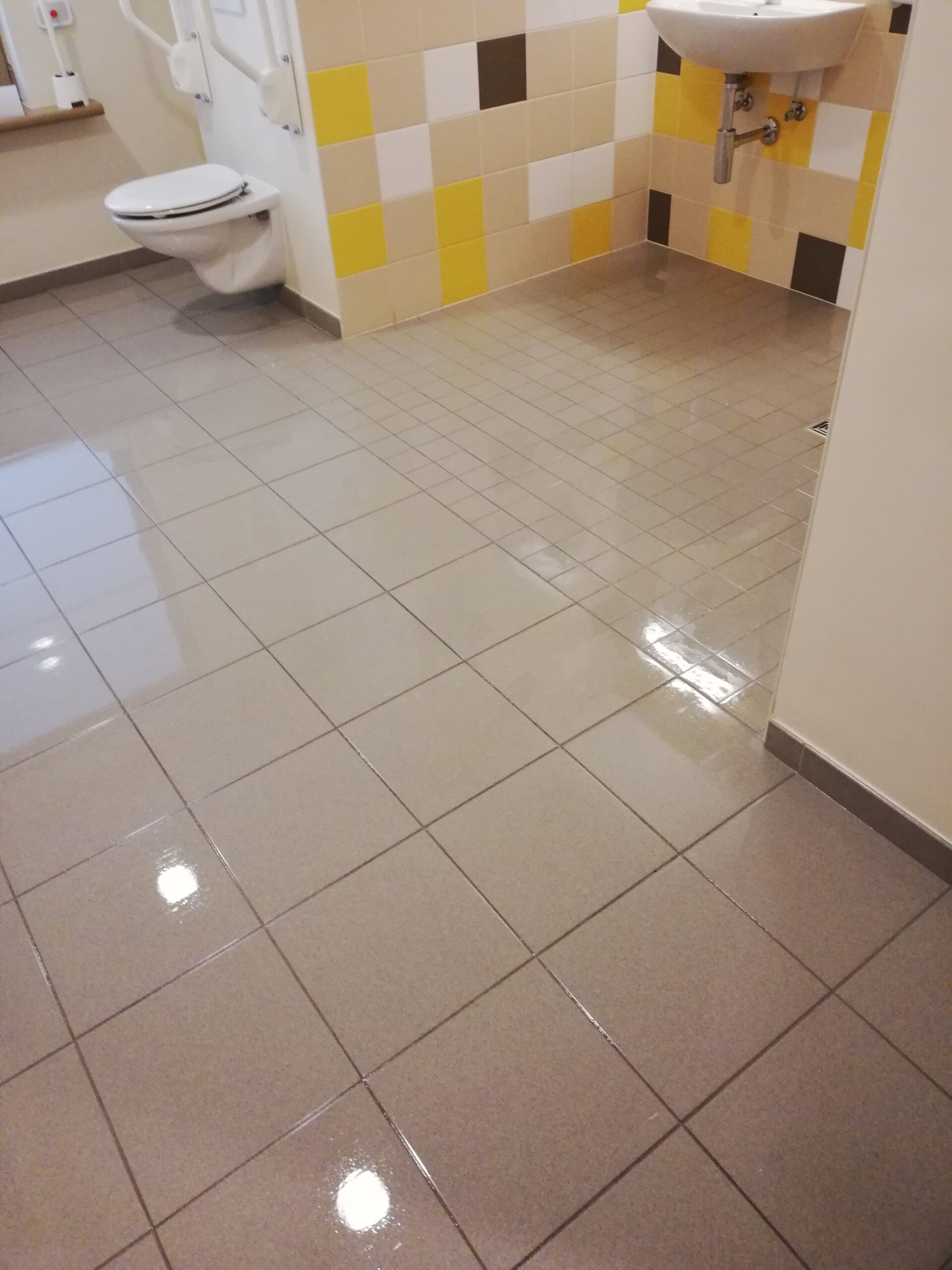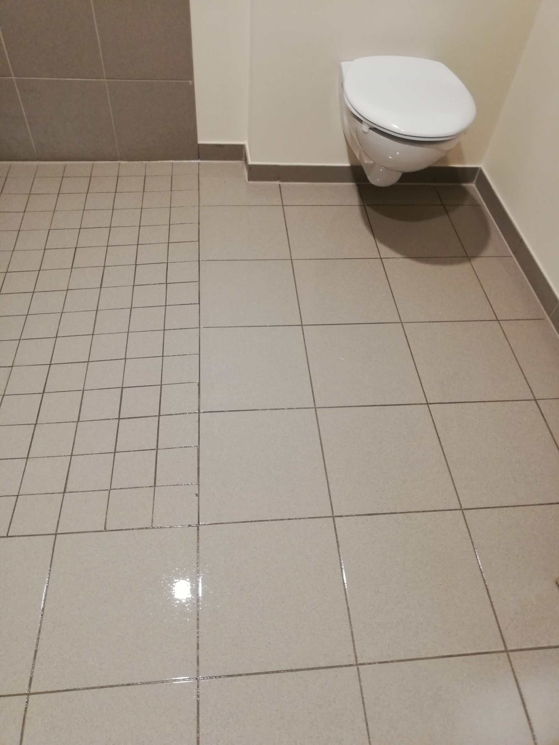 Geen badmatjes, anti slip tape of kleurrijke stroken te zien in dit woonzorgcentrum. Met de transparante anti slip behandeling bleef het uitzicht hetzelfde, maar een wereld van verschil met het gevoel van de vloer. Deze anti slip behandeling treed maar in werking wanneer de vloer nat wordt. Vegen, schoonmaken, lopen, … is allemaal hetzelfde gebleven! Nog een groot voordeel van deze behandeling is dat dit in één dag kan aangebracht worden. Zo konden de verzorging van alle bewoners gewoon doorgaan.