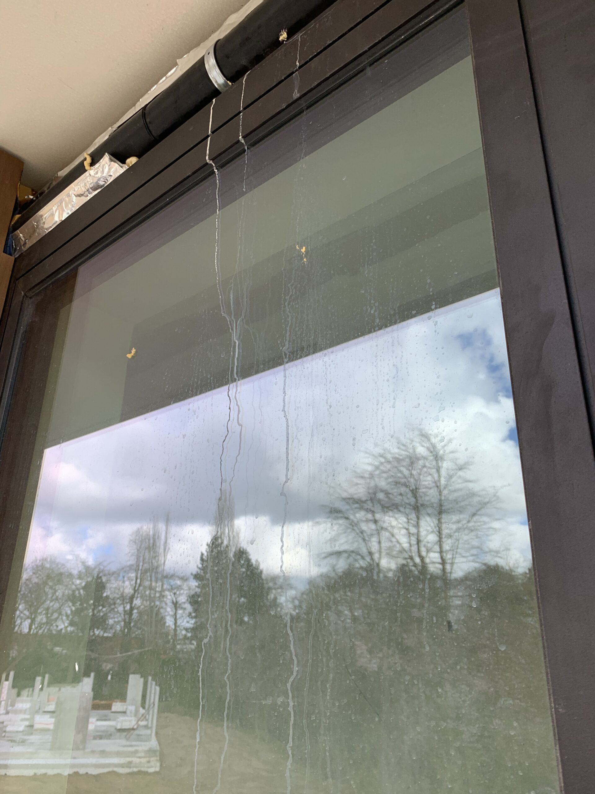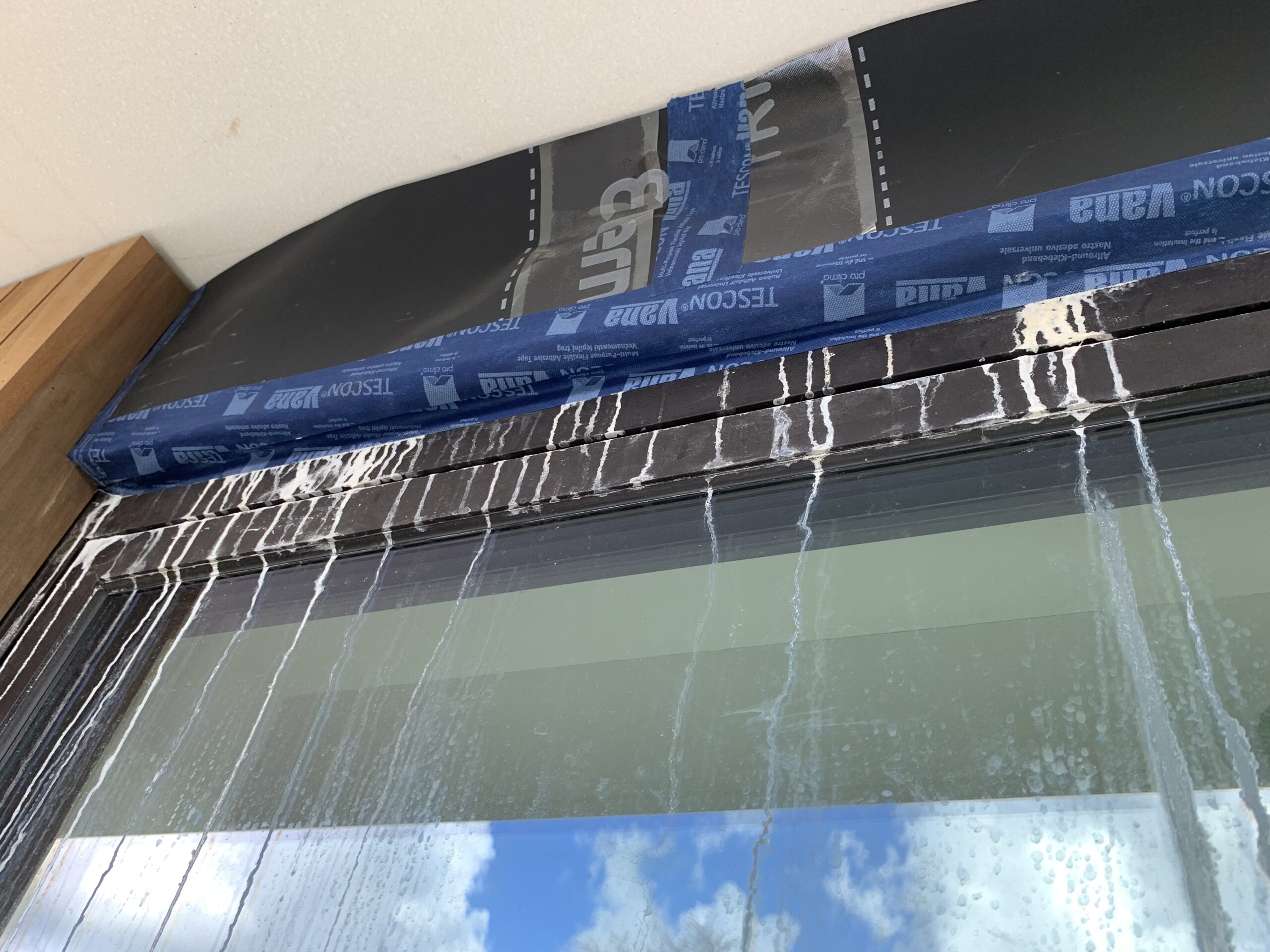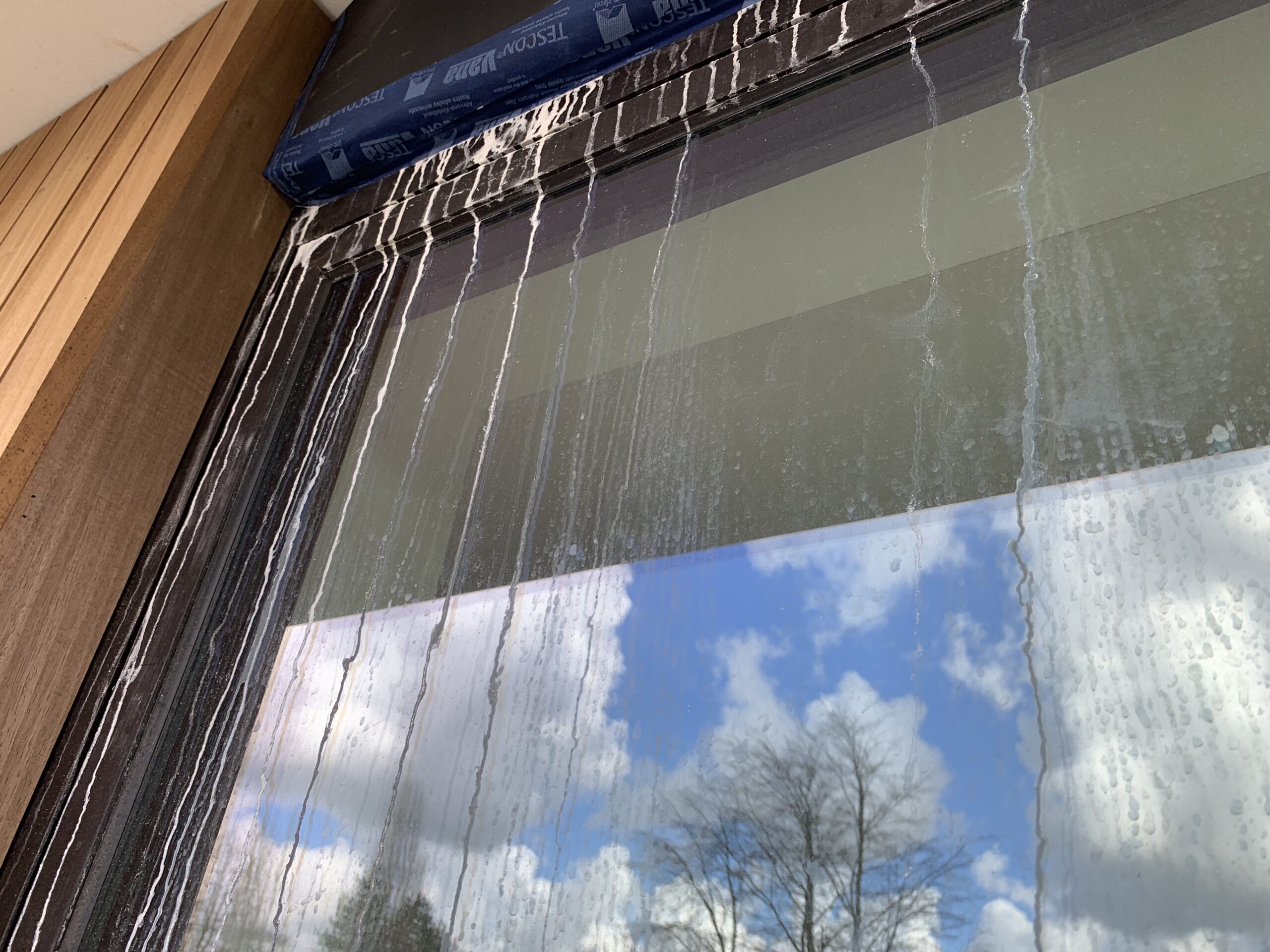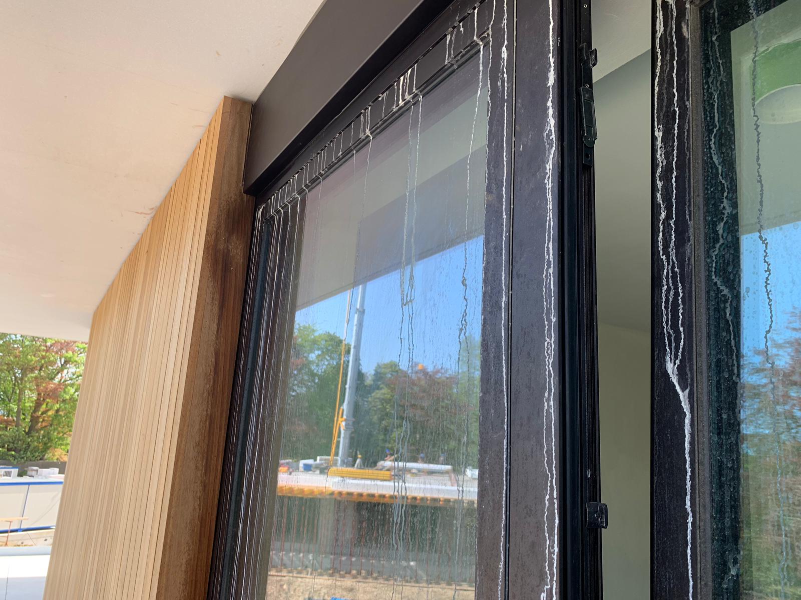 Hevige regenval maakt kalkvlekken op raamprofielen