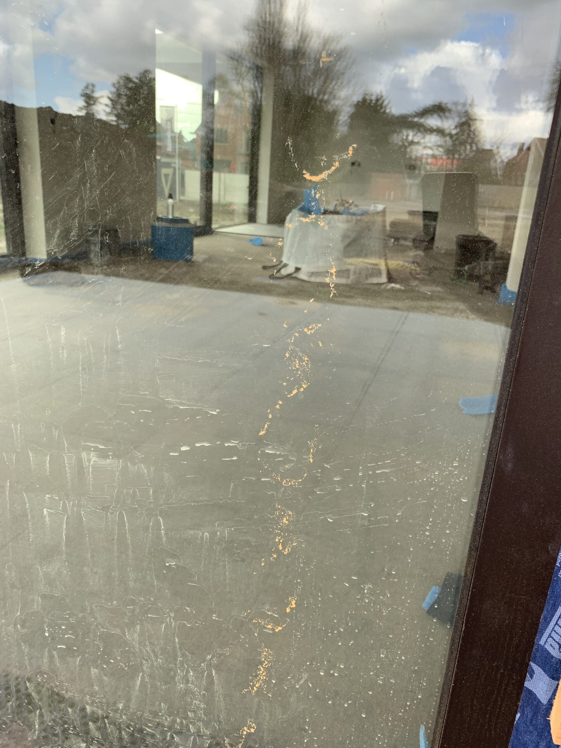 Met een ladder bij de hand namen we ieder raam onder handen. Met een professioneel product, konden we alle aftekeningen verwijderen van zowel de raamprofielen als het glas. Met veel geduld en professionaliteit, want wanneer het reinigingsproces niet correct wordt gevolgd, kan er snel bijkomende schade ontstaan aan de raamprofielen. (Dit is de reden waarom wij dit product niet te koop aanbieden. De kans op schade veel te groot.) We gebruiken dit professioneel producten enkel bij onze eigen reinigingsdiensten. Na een extra glaswas, konden we met trots het eindresultaat aan de klant afleveren.