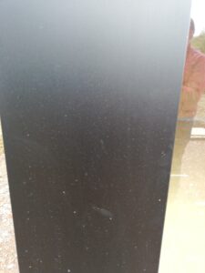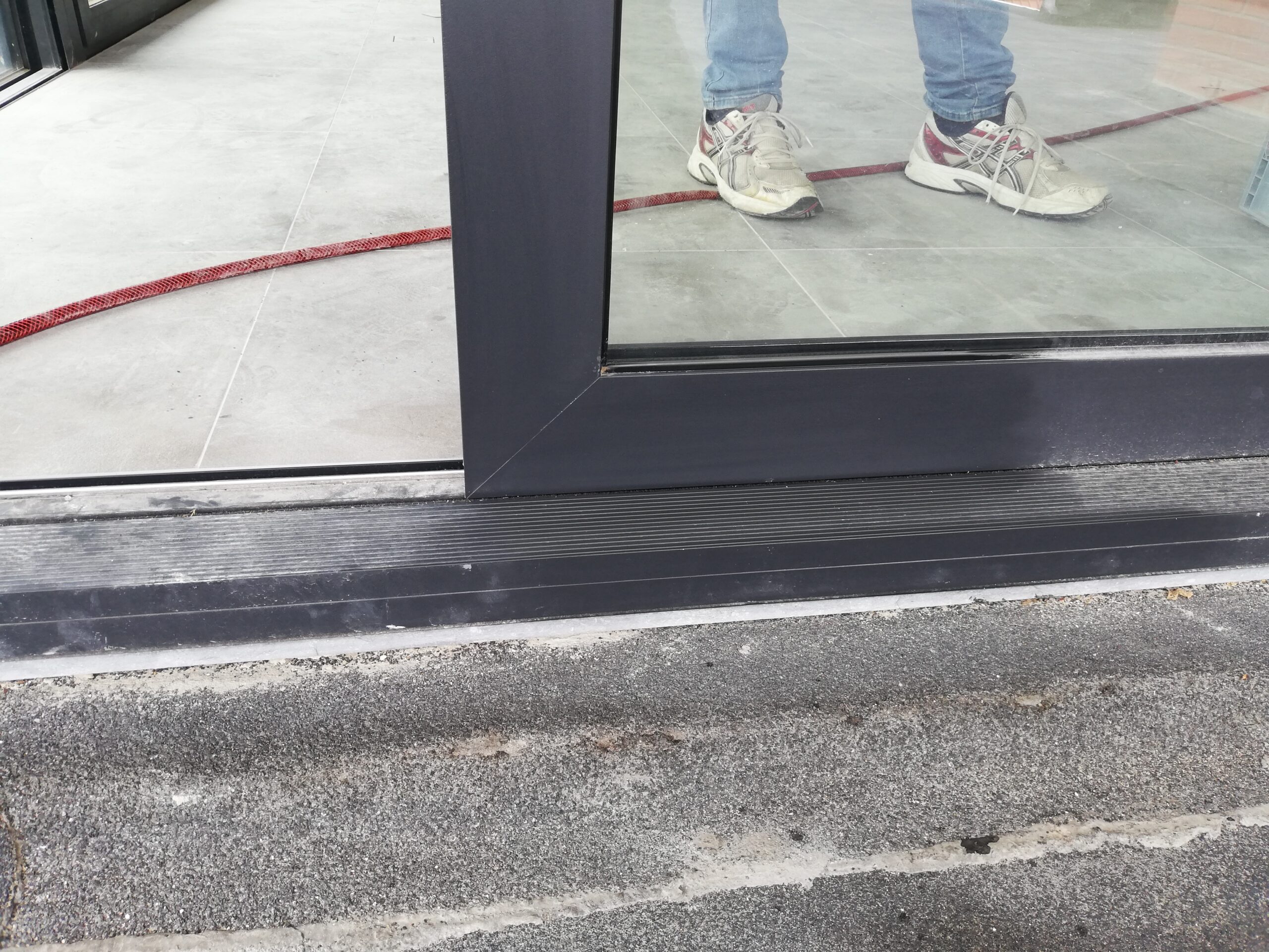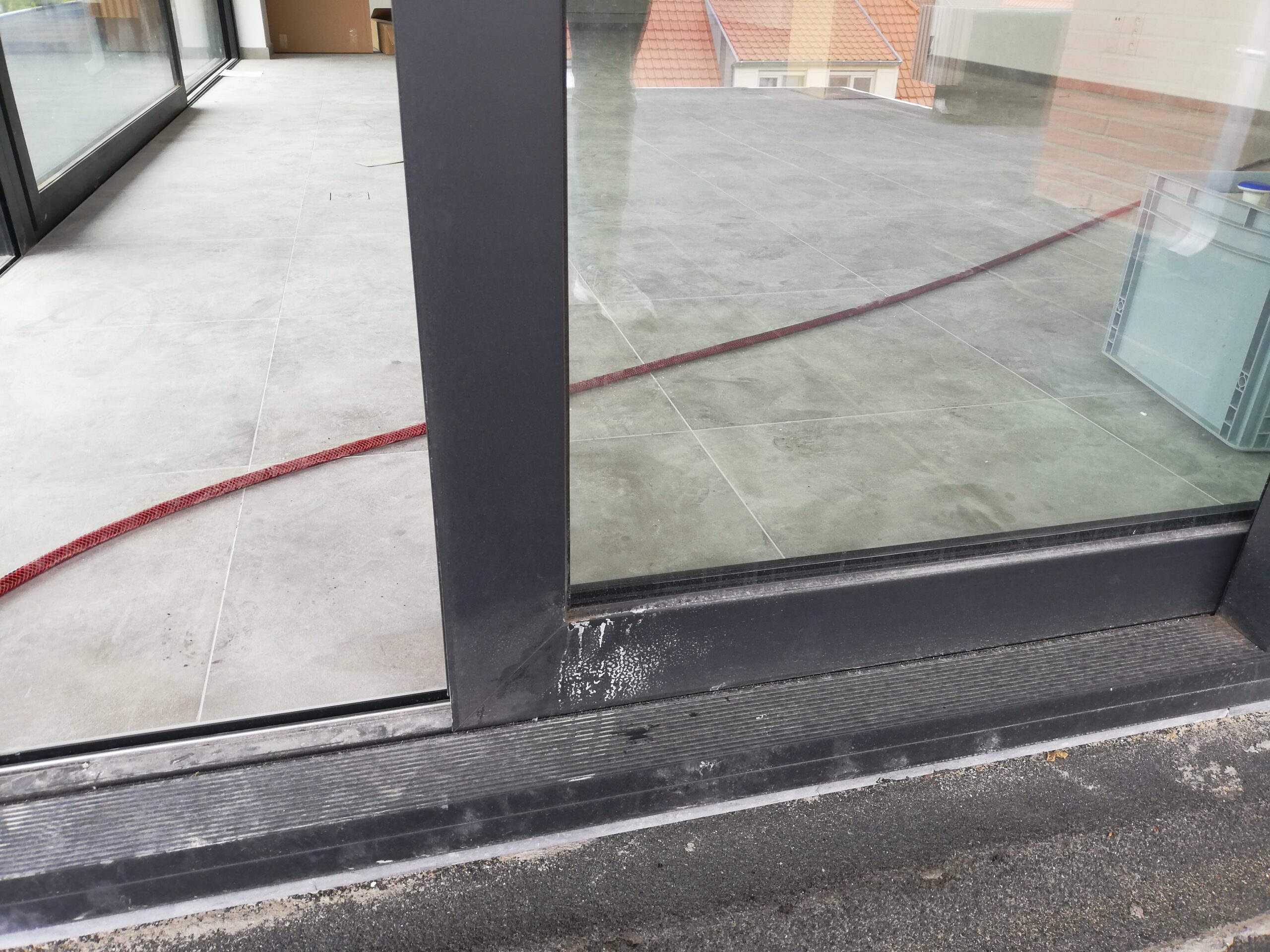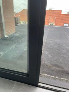 Onze klant had na de bouwwerken heel veel last van kalk en kalkvlekken op de zwarte aluminium raamprofielen. Deze moesten natuurlijk bij de oplevering worden weggehaald. Gelukkig was ze zelf niet aan de slag gegaan met producten om vlekken en extra schade te vermijden.