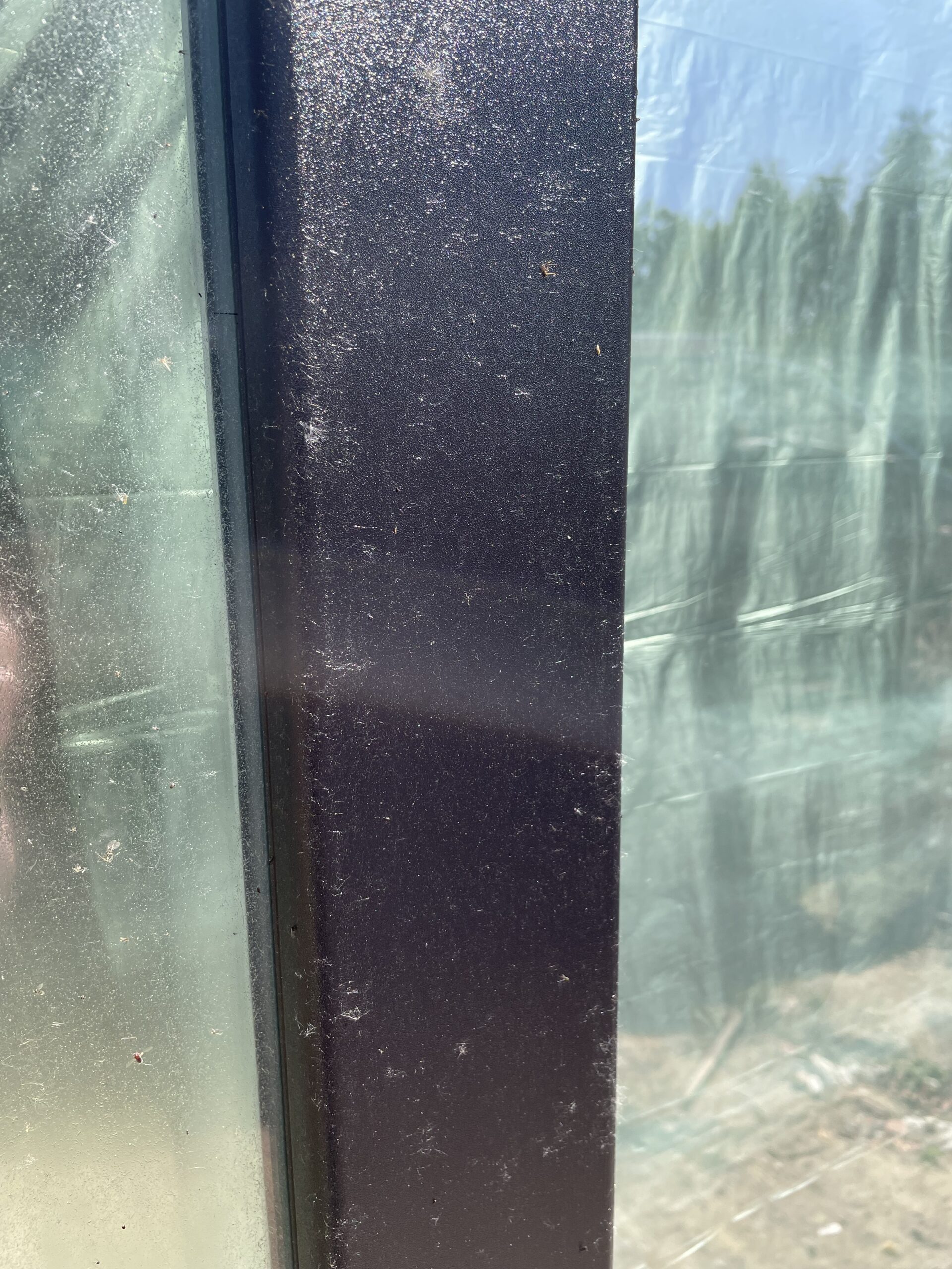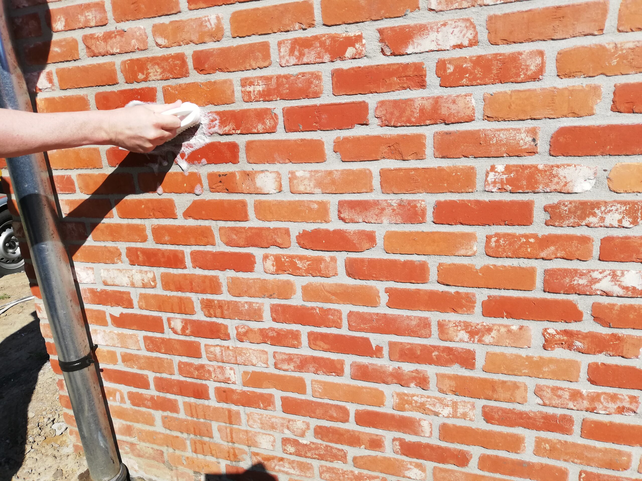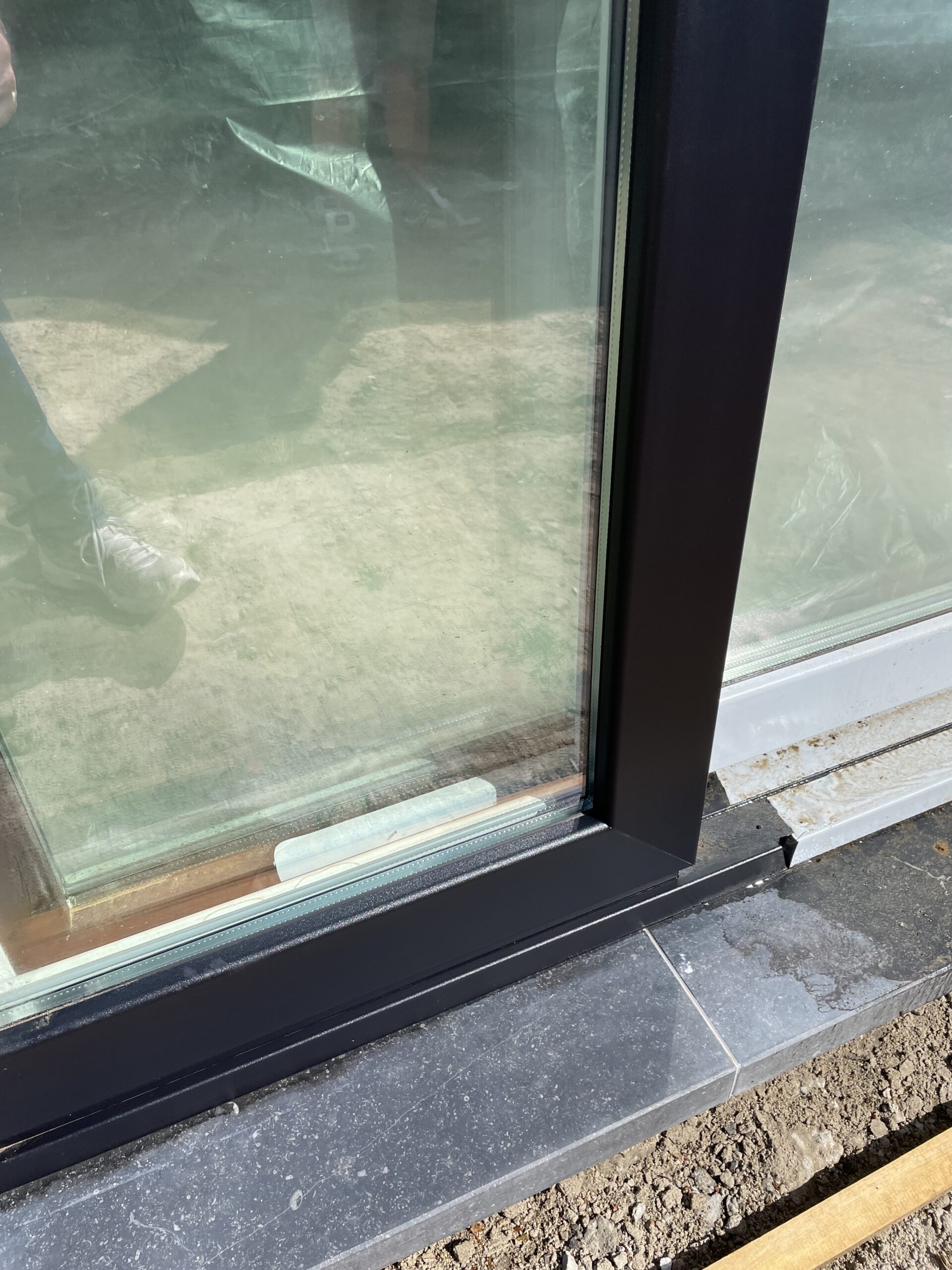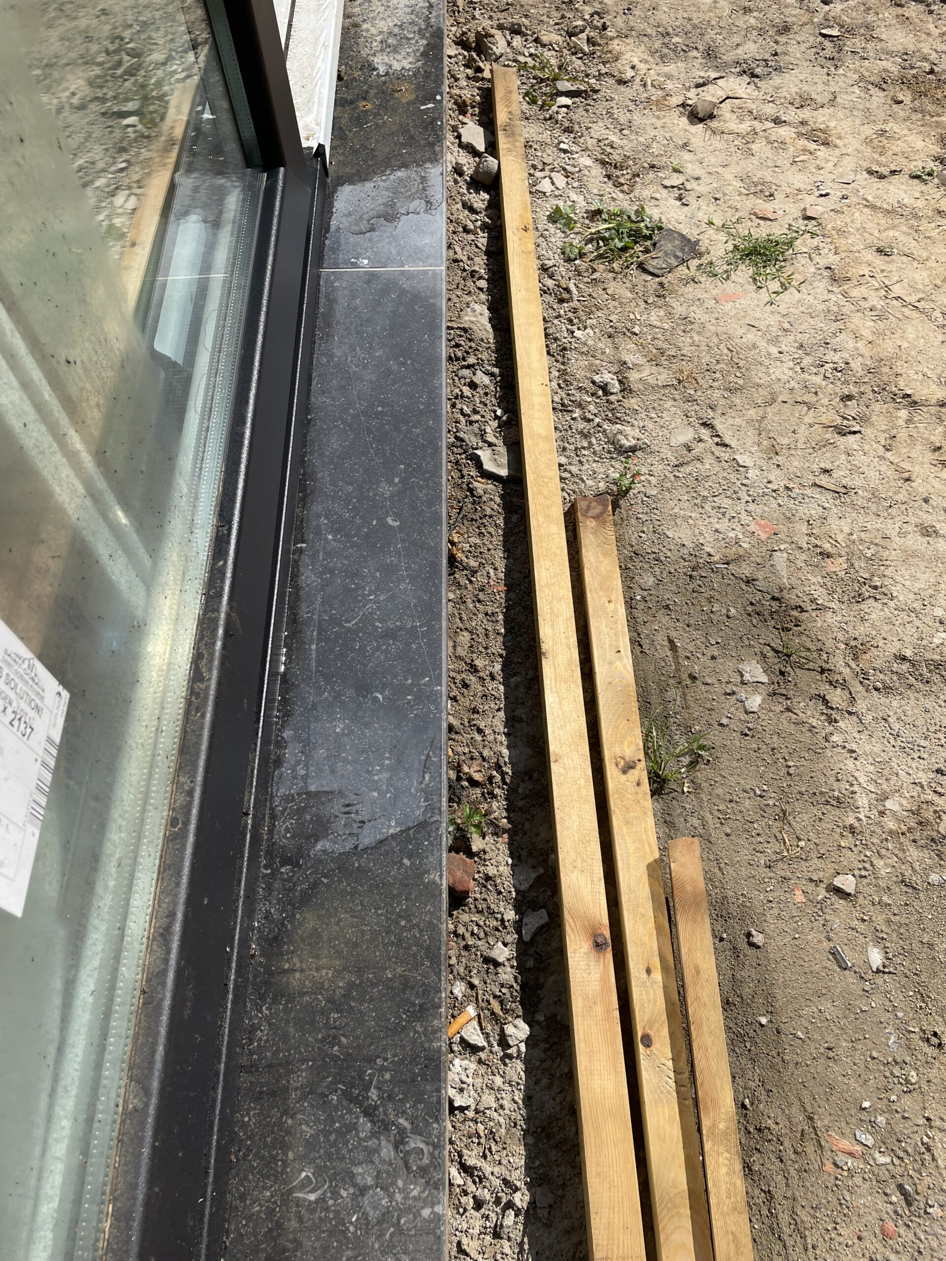 Tijdens grondwerken sprong de oliedarm van de graafmachine kapot. Bijgevolg is er hydrauliek olie terecht gekomen op de raamprofielen, het glas en de dorpels. Van sommige ondergronden verdwijnt de olie na verloop van tijd. Maar helaas … bij ramen en natuursteen is dat niet het geval. Olie krijgt men enkel verwijderd van ramen en natuursteen door een grondige reiniging.