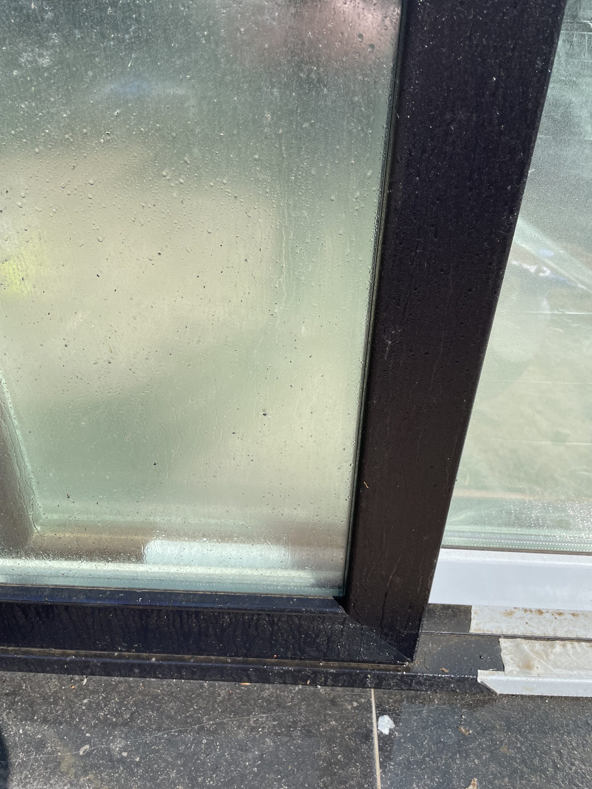 Hardnekkige vervuiling op gevel en raam door olielek