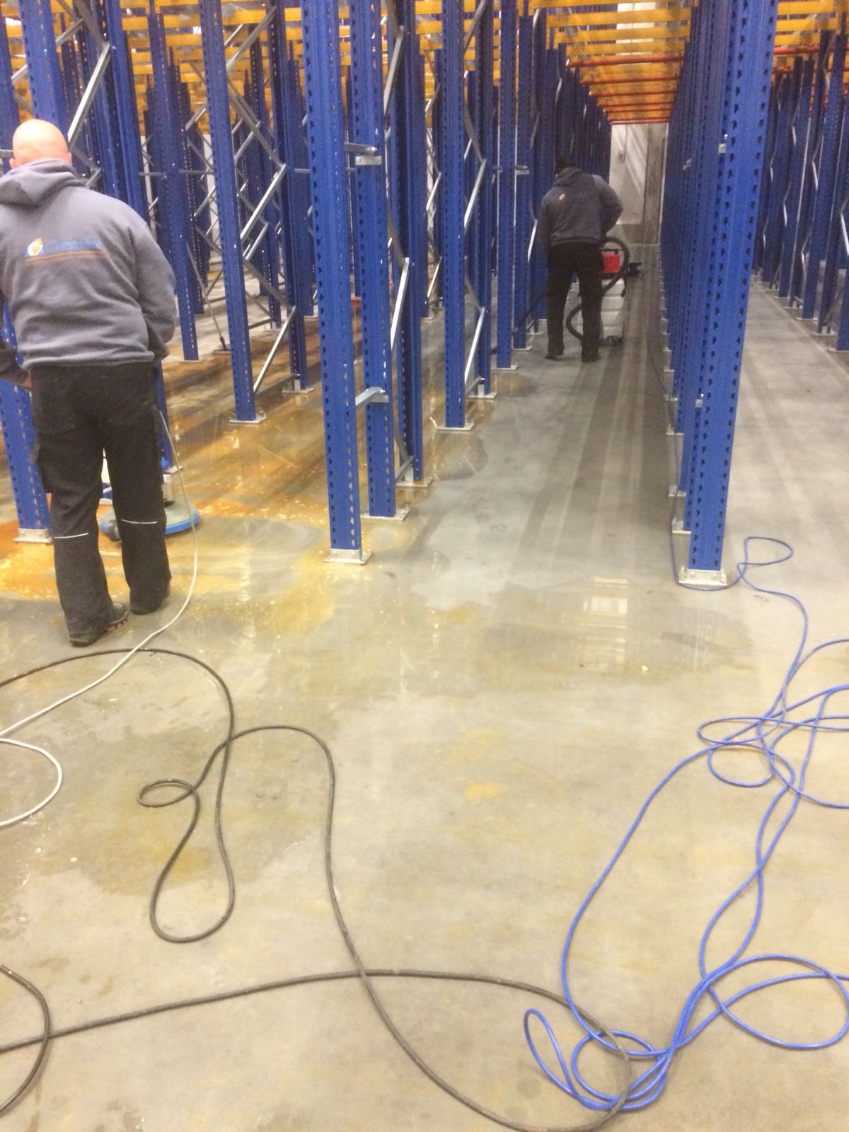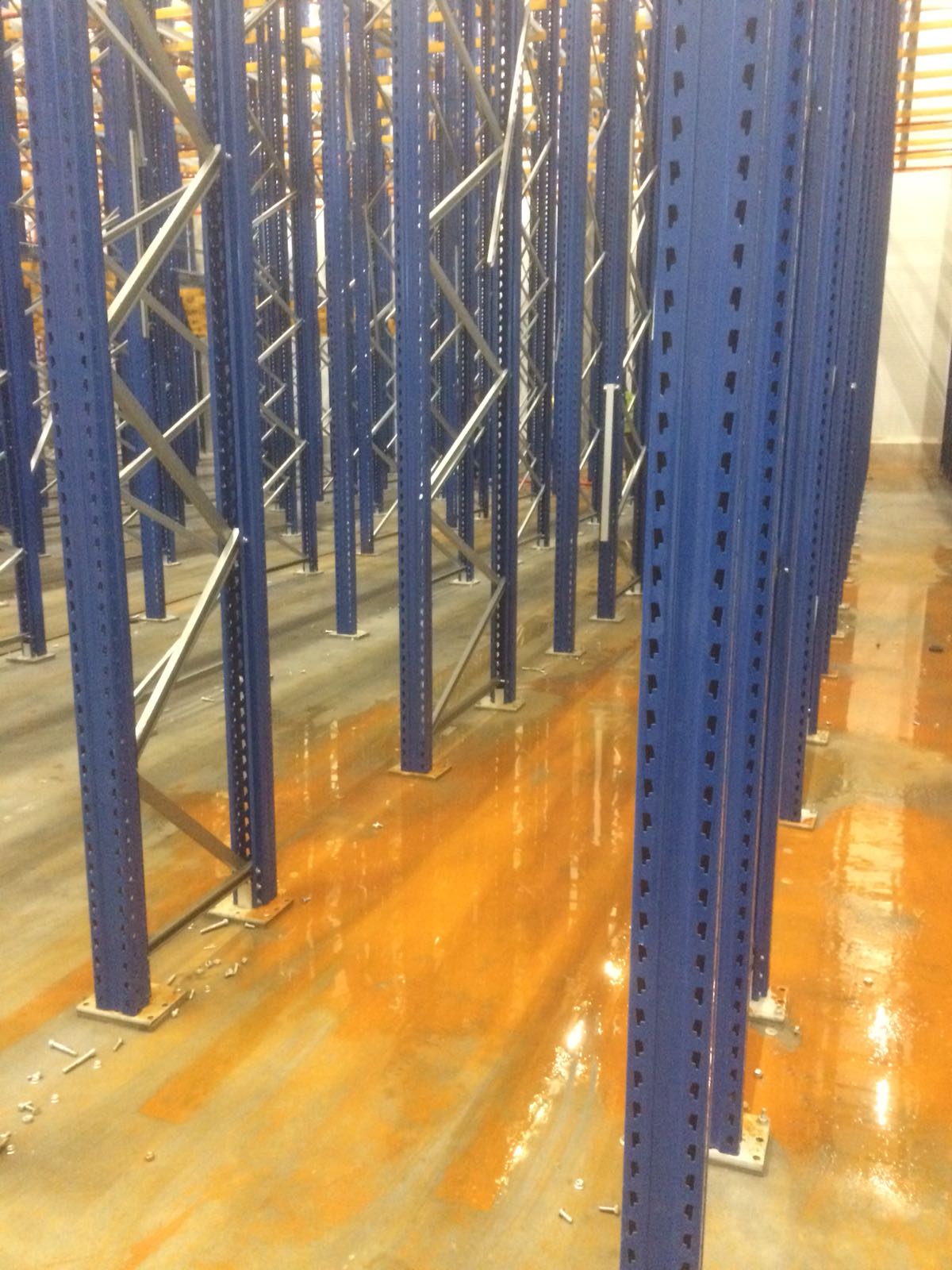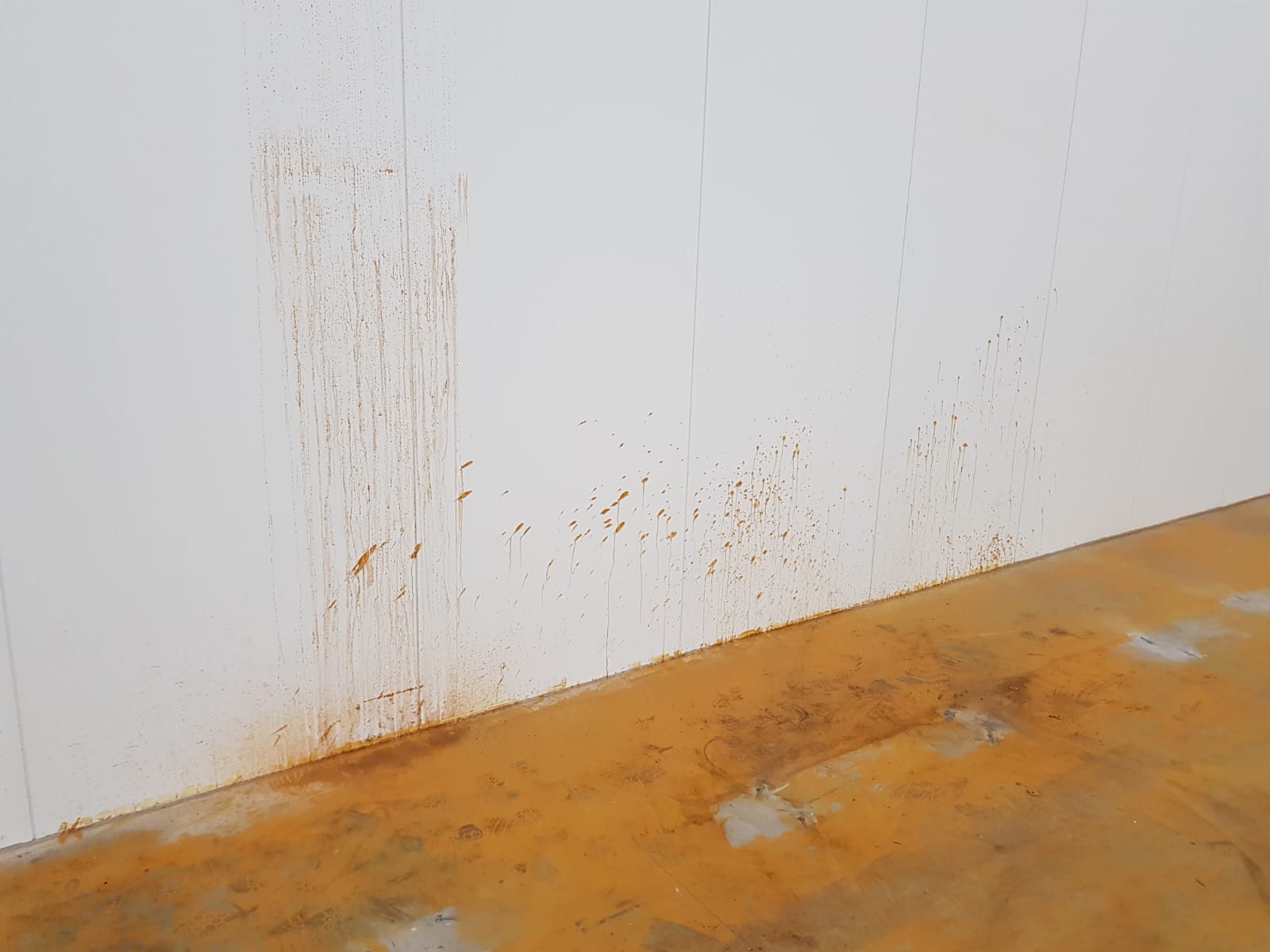 In 2 verschillende koelcellen werden de ingebouwd sprinklerinstallaties tegen brand verwijdert. Door ouderdom van de leidingen was het water gemengd met roest. Bij het verwijderen van de stellingen met ingebouwd brandblussysteem, in één koelcel, kwam al het roestwater op het beton terecht. In de andere koelcel kwam al het roestwater tussen de stellingen terecht. Dit was natuurlijk geen zicht. De koelcellen zaten allebei onder het roestwater. In de ene koelcel was het roestwater al opgedroogd, in andere was het nog “vers” water.
