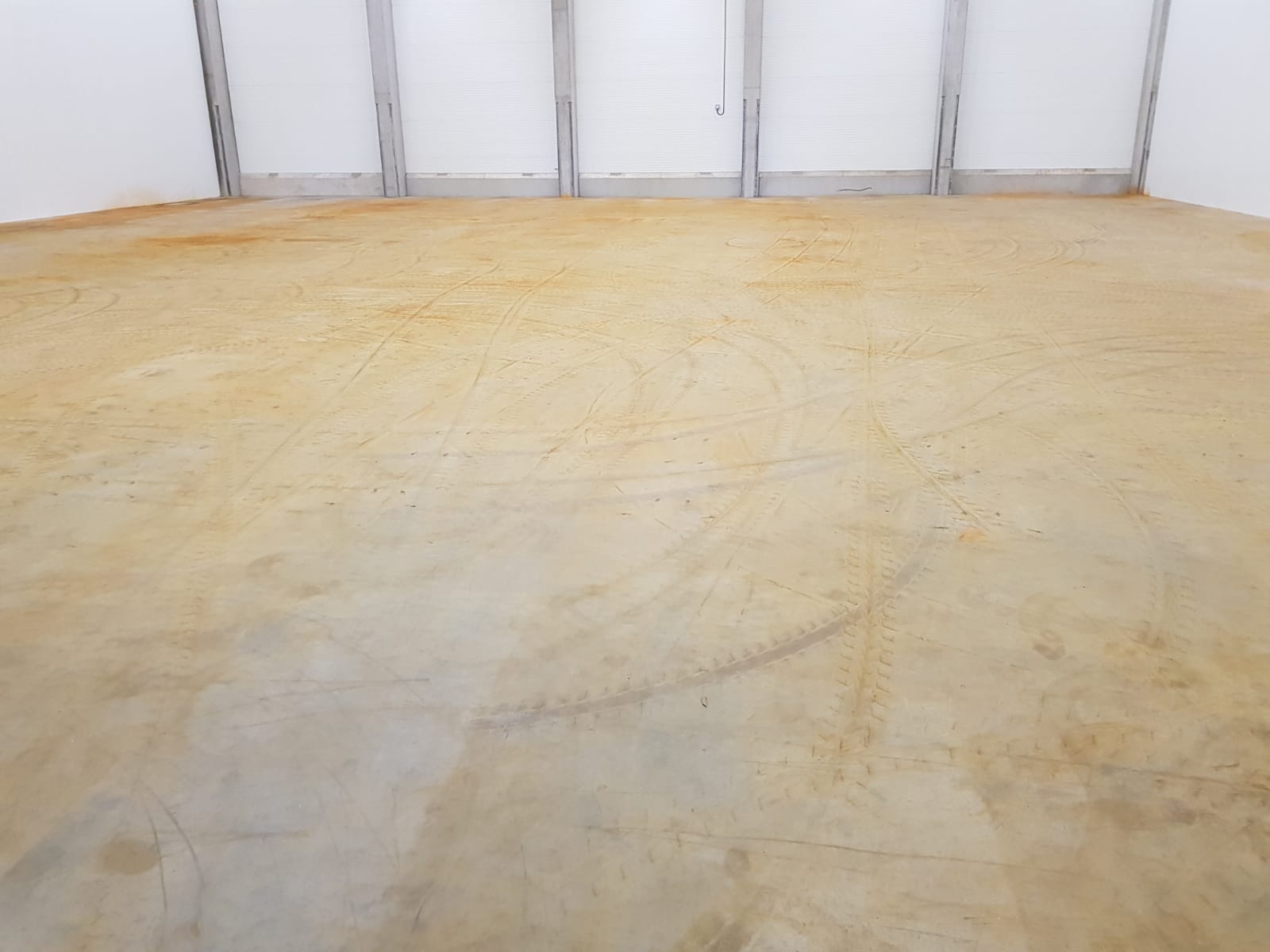 Chemifor werd eerst ingeschakeld om het “verse” water te verwijderen maar toch was het kwaad al geschied. De betonvloer zag er bruin uit door alle roestwater die nadien was opgedroogd. Ook de muren zaten onder de roestspatten. Met reinigingsproducten, reinigingsmachine en heel veel geduld ging Chemifor aan de slag. Eerst werd het roest door middel van producten aangepakt, daarna moest er een dieptereiniging van de betonvloer gebeuren maar het resultaat mocht er zijn!