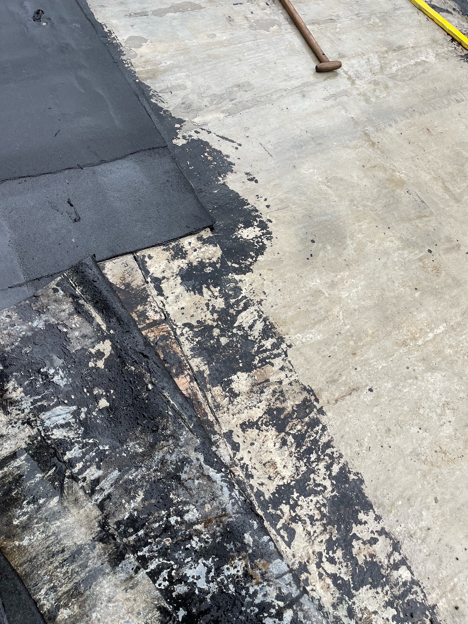 Wegens een verkeerde actie van een aannemer is er bitumen op terras stenen gelegd ten behoeve van het verhelpen van een waterlekkage naar de ruimte er onder welke absoluut geen waterlekkage was.