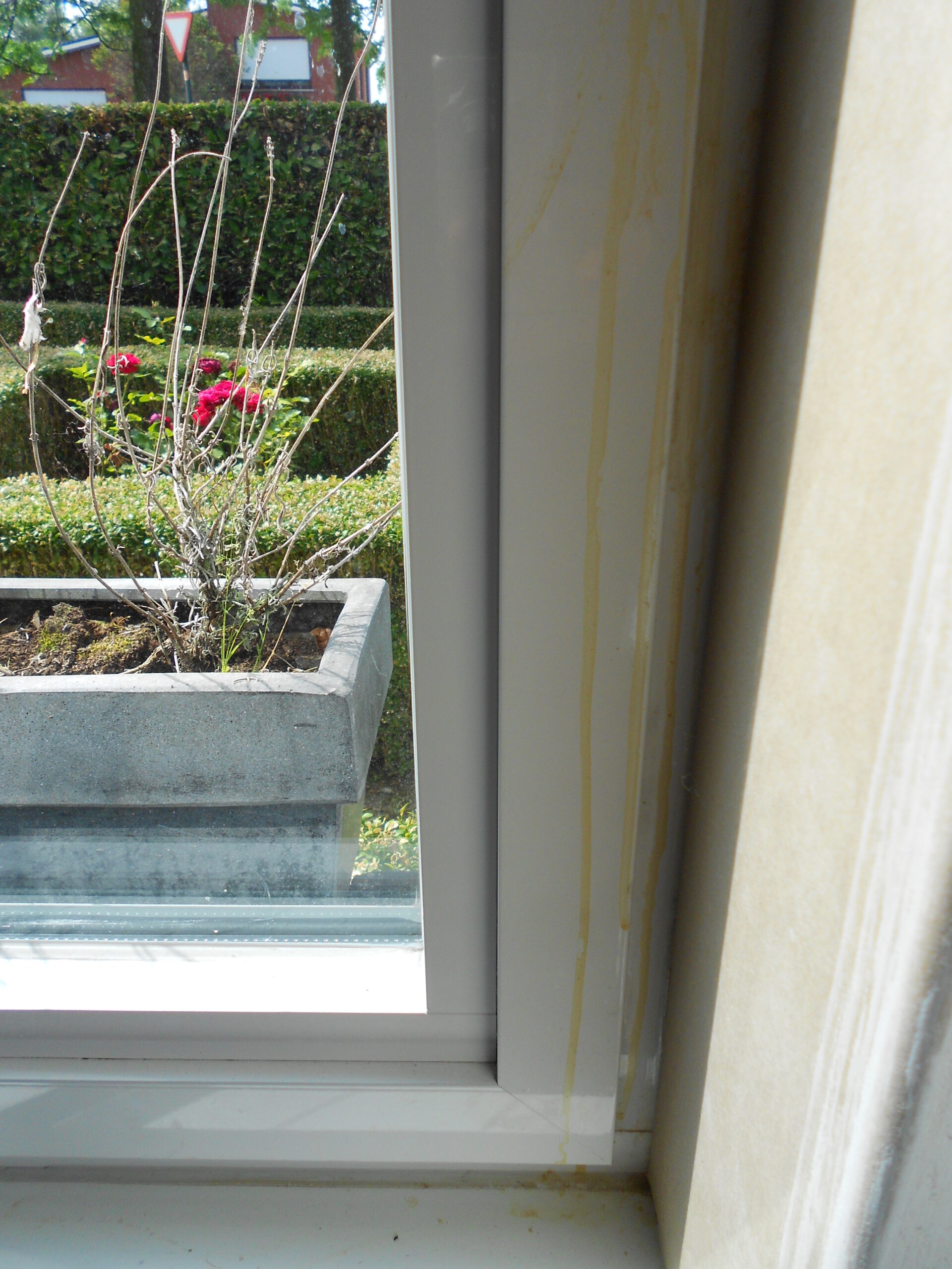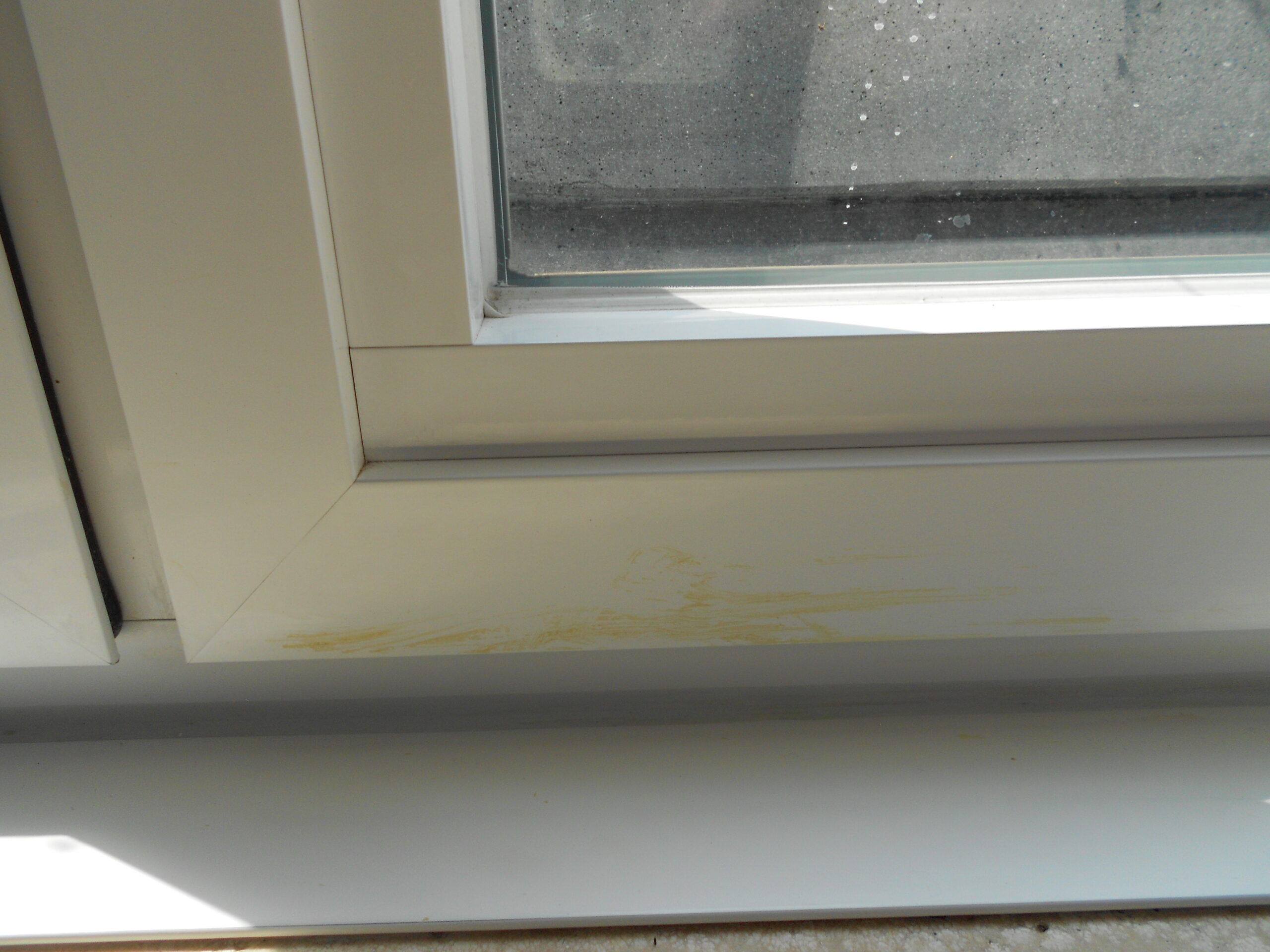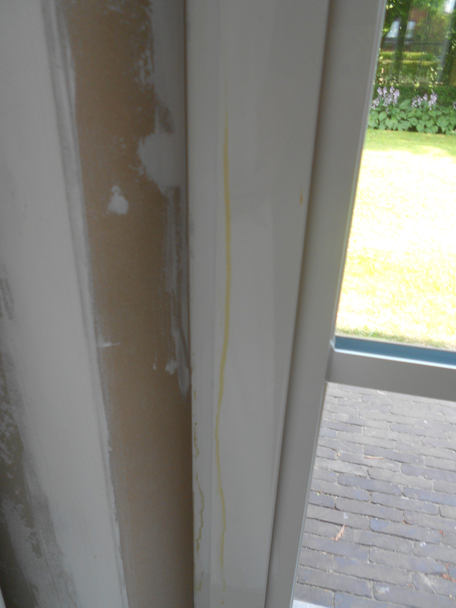Een ongelukje is snel gebeurt. Bij deze klant had de ramenboer te gretig omgegaan om alles af te werken met pu. De overtollige verse pu had hij netjes verwijdert maar helaas bleven de gele strepen van uitgeharde pu duidelijk zichtbaar, ook op deze witte achtergrond. Gelukkig schakelde de ramenboer ons in en hij ging niet zelf aan de slag om dit te verwijderen met eventueel de verkeerde producten.