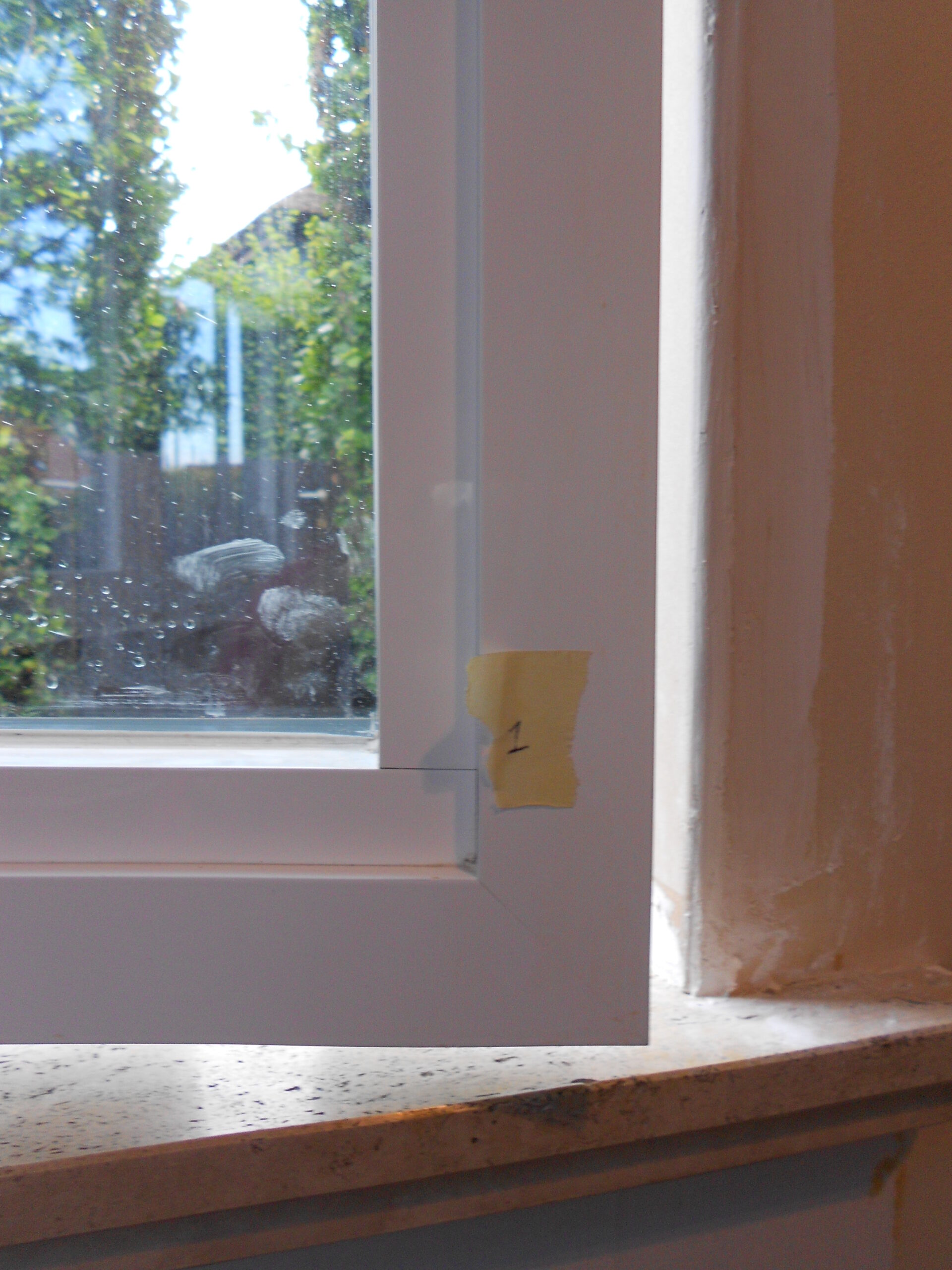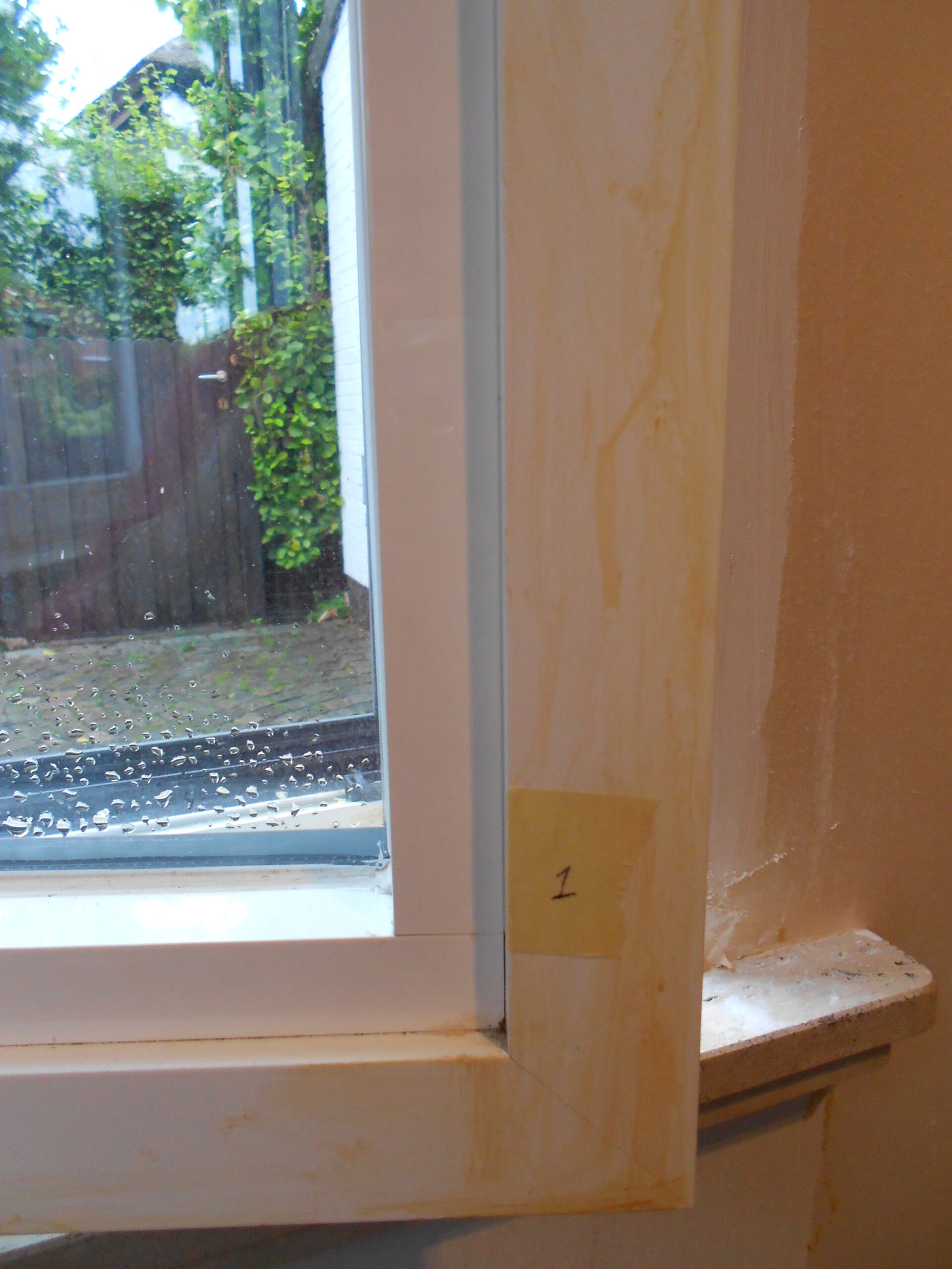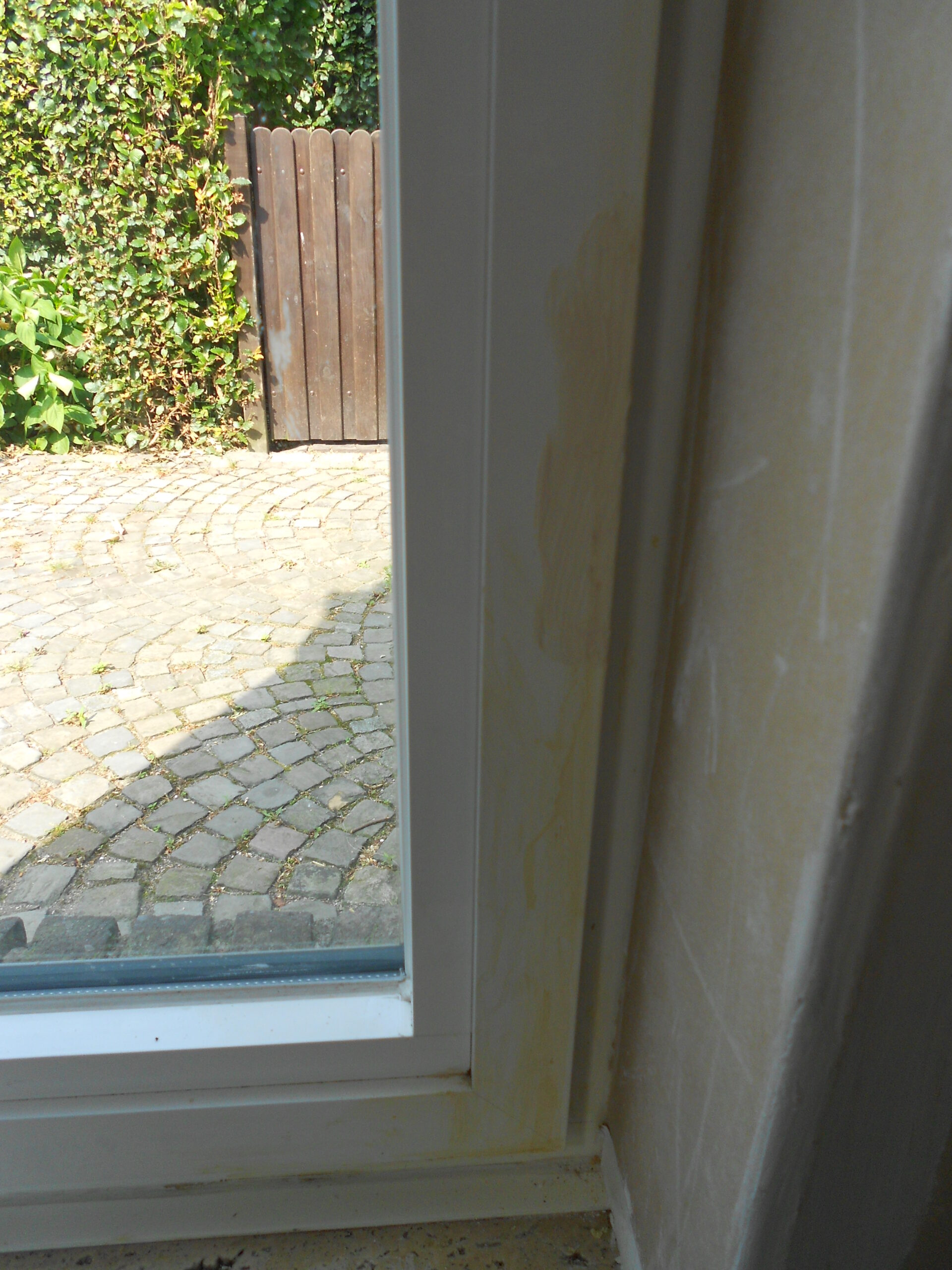 Een ongelukje is snel gebeurt. Bij deze klant had de ramenboer te gretig omgegaan om alles af te werken met pu. De overtollige verse pu had hij netjes verwijdert maar helaas bleven de gele strepen van uitgeharde pu duidelijk zichtbaar, ook op deze witte achtergrond. Gelukkig schakelde de ramenboer ons in en hij ging niet zelf aan de slag om dit te verwijderen met eventueel de verkeerde producten.