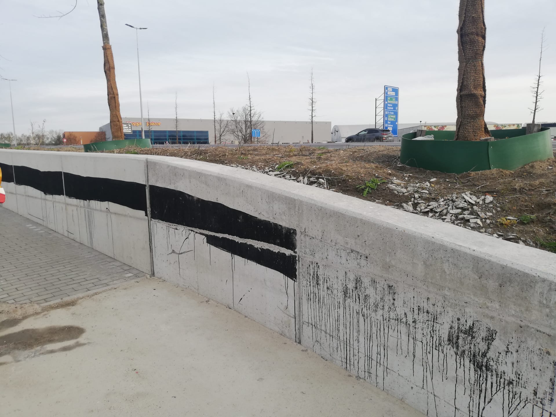 – Is er teer terecht gekomen op een muur waar het niet bedoelt was? –