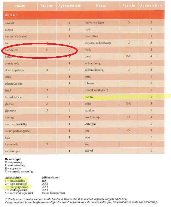 • Zoutzuur: 5: Zeer sterk agressief (Reactietype: oplossing en corrosie wapening)