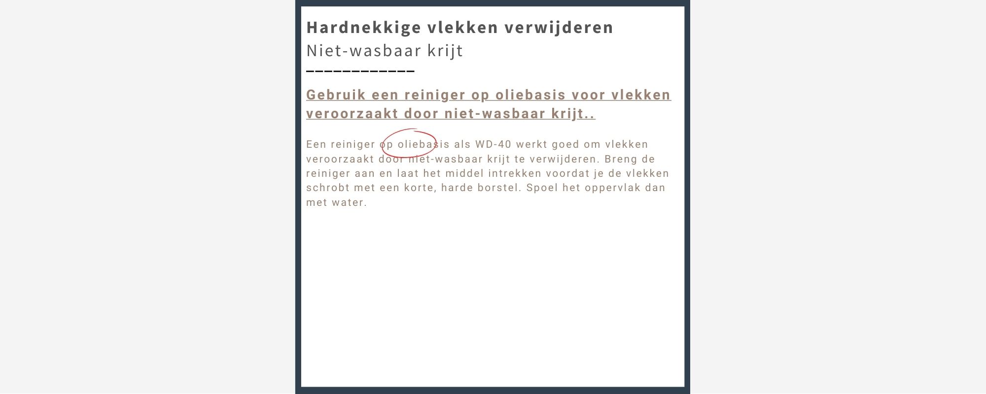 Hardnekkige vlekken verwijderen: Niet-wasbaar krijt
